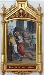 | Keywords: Simon Ogrin - Križev pot, 1. postaja (Goriča vas).jpg Artwork creator Simon Ogrin 1899 oil canvas cm 80 54 Goriča vas Church https //prezi com/gd-yfn-05joo/oljne-slike-iz-obdobja-od-1800-do-1914-v-cerkvah-ribniske-zu Non-free frame PD-old-auto 1930 1899 paintings in Slovenia Paintings by Simon Ogrin Stations of the Cross in Slovenia Station 1 Jesus is condemned to death 19th-century paintings of the Passion of Christ 19th-century religious paintings in Slovenia 19th-century oil on canvas paintings in Slovenia Goriča vas |