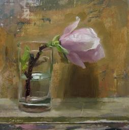 Keywords: Simon Shawn Andrews . Magnolia Flower in a Glass oil on linen panel 6x6 2013 art-call Artistically