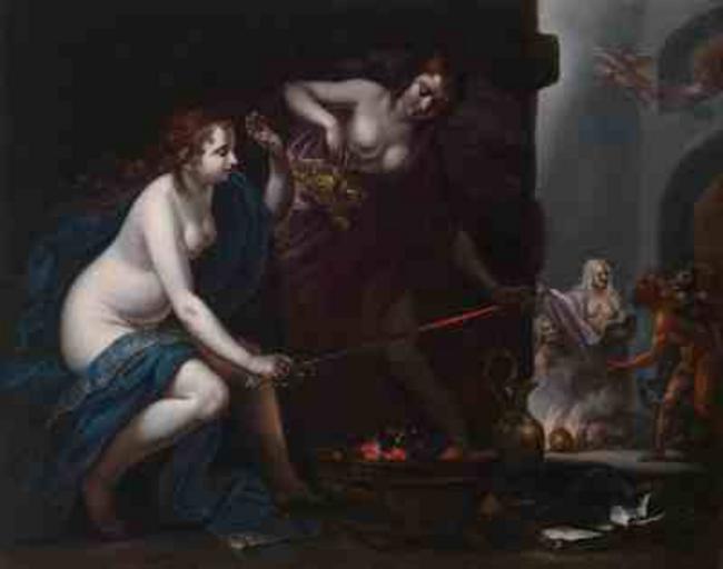 Keywords: Simone Pignoni - Anfinome and Evadne.jpg Anfinome and Evadne daughter of Pelias Painting by Simone Pignone Oil on canvas 86 x 106 cm Simone Pignoni PD-Art Artworks missing infobox template