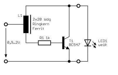 | Keywords: Simple LED-Boost-Converter.svg en Simple LED boost converter circuit LED threshold voltage is used as regulating element Coil has to be 20 50 windings on a ferrite ring with tap in center Parts are not critical any NPN transistor/coil wire/ring diameter and ferrite material will do de Einfacher Aufwärtswandler für LEDs own Janka Cc-zero Electronic_diagrams Light-emitting diode circuits | ||||