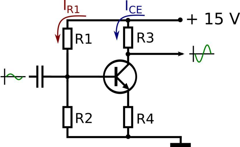 Keywords: Simple transistor amplifier.svg Standard transistor amplifier Own 2007-01-15 Filip Dominec Public Domain ElCompLib Inkscape Common-emitter amplifier circuits
