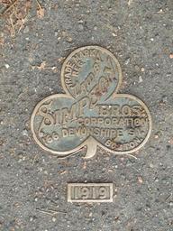 Keywords: Simpson Bros sidewalk marker - Cambridge, MA - DSC00387.JPG en Sidewalk marker in Cambridge Massachusetts USA Text reads Laid by Simpson Bros Corporation / 166 Devonshire St / Boston / Trade Mark Reg / 1919 This image is in the public domain because first published before 1923 2011-11-27 own Daderot cc-zero Uploaded with UploadWizard Cambridge Massachusetts Sidewalks in Massachusetts
