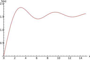 Keywords: Sin integral.svg Graph of the sine integral function <math>\mathrm Si x </math> Created using Mathematica 6 Own 2008-05-01 Saran T Integral functions