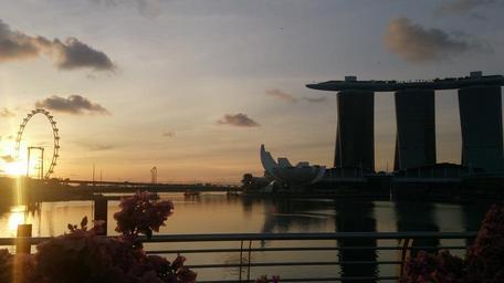 | Keywords: Singapore Flyer and Marina Bay Sands, Singapore, at sunrise - 20130901.jpg A silhouette view of the w Singapore Flyer at the left and Marina Bay Sands right on a Sunday morning 2013-09-01 07 12 16 Own ProjectManhattan cc-zero Marina Bay Singapore Marina Bay Sands Sunrises of Singapore Uploaded with UploadWizard |