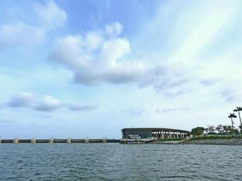 Keywords: singapore marina barrage singapore landmark singapore river blue sky water wave reflections clouds scenery peaceful
