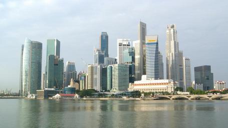 Keywords: singapore city skyscrapers buildings skyline urban sky clouds reflections bay harbor water