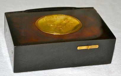 Keywords: Singing bird box by Bontems (2).JPG en Singing bird box model nº 11 by the reputed French house Bontems circa 1890 Fitted with a going-barrel movement The beautiful and delicately crafted full-bodied bird with spiral legs exhibits multi-coloured layered feathered plumage with predominant tones of green and red complemented with also green red orange and blue iridescent hummingbird feathers giving as a result a well-combined palette of colours They were dressed by hand so no two birds look exactly alike The birds made by Bontems in this period are the most detailed and proportionate they ever made It goes up and down moving bone beak wings and tailfeather to continuous realistic birdsong rising through finely pierced and tooled gilt grille Plain polished silver gilt matt finished lid interior while the exterior shows a pair of hand-engraved birds foliage and floral decoration framed by a plain oval border in highly polished tortoiseshell case with a small hinged compartment to rear matching gilt start/stop button to front-right The top interior of the case has been shaved getting a semi-transparent look with a rich variety of tones and shades of honey brown and amber colours which allows to see part of the mechanism in action Measurements 10 cm by 6 70 cm by 3 10 cm Caja de pájaro cantor autómata modelo nº 11 fabricada por la firma francesa Bontems hacia el año 1890 El ave está vestida con plumaje de colibrí sudamericano con colores predominantes en verde y rojo complementados asimismo con verde rojo naranja amarillo y azul iridiscentes pico de hueso o marfil y patas de alambre en espiral Estos autómatas eran adornados a mano así que no hay dos que sean exactamente iguales Los pajarillos elaborados por Bontems durante esta época son de los más hermosos detallados y proporcionados que hicieron Mientras canta el ave autómata se mueve ligeramente de arriba a abajo abre y cierra el pico bate las alas y mueve la cola surgiendo a través de una rejilla finamente trabajada Caja con forma de tabaquera de auténtico carey pulido con pequeño compartimento en la parte trasera la cual muestra en su parte superior un medallón ovalado de plata dorada donde se representa una composición formada por una pareja de aves simbolizando la fidelidad y decoración vegetal a base de ramas con hojas y flores grabadas a mano todo ello enmarcado por un marco igualmente ovalado Palanca de mando de latón situada en la parte frontal derecha La parte superior interna de la caja ha sido rebajada en grosor lo cual permite apreciar toda una serie de matices y tonalidades en colores ámbar y marrón incluso puede observarse parte de la maquinaria en funcionamiento Teniendo en cuenta que el caparazón de tortuga difiere en cada ejemplar y que los artesanos trabajaban cada caja de manera individual dándole distintos acabados no hay dos que sean idénticas Medidas 10 cm de largo por 6 70 cm de ancho por 3 10 cm de alto own Jafd88 2012 Singing Bird Box Cc-zero