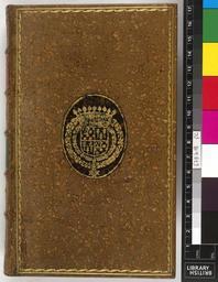 | Keywords: , -Single Works. Don Quixote. Spanish. Pt. I, II - Vida y Hechos del Ingenioso Cavallero Don Quixote de la Mancha ... Nueva edicion, coregida y ilustrada con differentes estampas, etc. (2 vo - Upper cover (678b18).jpg Style Armorial; Caption Upper cover; Colour Brown; Edge Unspecified exhibition history Decorative Technique Sprinkled Tooled in gold; Cover Material Calf From the library of Revd Clayton Mordaunt Cracherode 1730-1799 object history Text 1662; Brussells; Phelypeaux Louis Count de Pontchartrain 1643-1727 object type Cc-zero place of creation Binding France place of discovery Unspecified British Library image http //www bl uk/catalogues/bookbindings/LargeImage aspx RecordId 020-000011170 ImageId ImageId 45190 Copyright BL Single Works Don Quixote Spanish Pt I II Vida y Hechos del Ingenioso Cavallero Don Quixote de la Mancha Nueva edicion coregida y ilustrada con differentes estampas etc 2 vol J Mommarte Bruselas 1662 Uploaded with GWToolset Single Works Don Quixote Spanish Pt I II Vida y Hechos del Ingenioso Cavallero Don Quixote de la Mancha Nueva edicion coregida y ilustrada con differentes estampas etc 2 vo - Upper cover 678b18 http //www webarchive org uk/bldatasets/bindings/12127_4 jpg Bookbinding 17th-century bookbinding British Library Bookbindings |