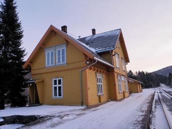 Keywords: 62 57N 10 44E Singsås Station is a railway station located in the village of Singsås in the municipality of Midtre Gauldal in Sør-Trøndelag county, Norway. Opened 1876. attribution: Manxruler