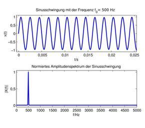 Keywords: Sinus500.svg en Spectrum of a sinosoidal signal de Amplitudenfrequenzgang eines Sinussignals own Michael Lenz Noise Frequency spectrum