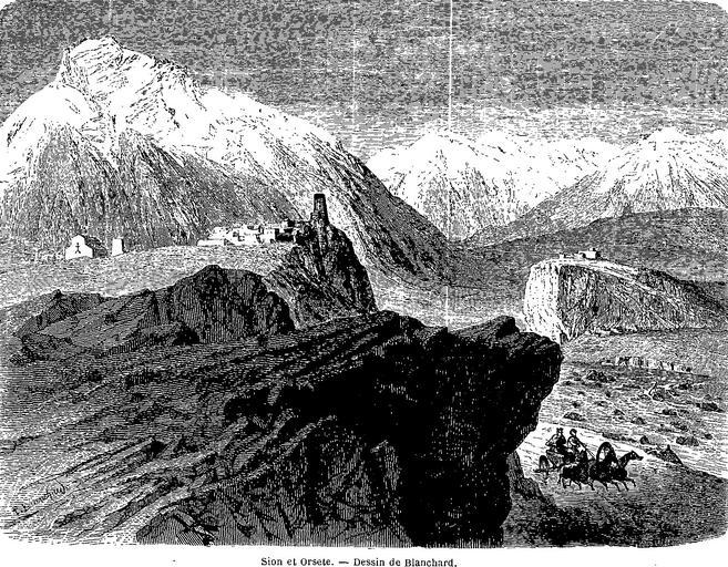 | Keywords: Sione et Orsete. Dessin de Blanchard. Le Tour du monde (Paris. 1860-1914).jpg 1Sione et Orsete Dessin de Blanchard Le Tour du monde nouveau journal des voyages / publié sous la direction de M Édouard Charton et illustré par nos plus célèbres artistes ark /12148/bpt6k34379n/f131 image 1861 P B Blanchard Sioni village Qazbegi Images from Le Tour du monde Georgia in art PD-Art-100 | ||||