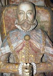 | Keywords: francis knollys francisknollys henry viii henryviii elizabeth i elizabethi tudors mary boleyn maryboleyn anne boleyn anneboleyn effigy tudor nobility tudornobility united kingdom unitedkingdom britain english nobility englishnobility architecture Born: 1511 Treasurer of the Royal Household Died: 19th July 1596 at Rotherfield Greys, Oxfordshire Sir Francis was elder son of Robert Knollys, Usher of the Royal Chamber, and his wife, Katherine daughter of Sir Thomas Peniston. The family is said to have been descended from Sir Robert Knollys the famous soldier (d.1407), but the proofs are wanting and the pedigree cannot be authentically traced beyond Sir Thomas Knollys, Lord Mayor of London in 1399 and 1410, from whom Sir Francis was fifth in descent. Born about 1511, a few years before his father was given the manor of Rotherfield Greys in Oxfordshire for an annual rental of a single red rose, Francis was largely raised under the auspices of his mother, since his father died when he was only seven. Katherine Knollys soon remarried to Sir Robert Lee of Burston in Buckinhamshire, producing a number of half-siblings. Sir Robert died in 1537 and she then became the second wife of Sir Thomas Tresham of Rushton in Northamptonshire. Francis appears to have received some education at Oxford, but an old assertion that he was for a time a member of Magdalen College is unconfirmed. Henry VIII extended to Francis Knollys the favour that he had shown to his father and, in 1538, secured for him his the estate of Rotherfield Greys. Acts of Parliament in 1541 and in 1546 attested to this grant, in the second act making his wife joint-tenant with him. At the same time, Francis became one of the gentlemen-pensioners at court and, in 1539, attended Anne of Cleves on her arrival in England. In 1542, he entered the House of Commons for the first time as member for Horsham. At the beginning of Edward VI's reign, he accompanied the English army to Scotland and was knighted by the Commander-in-Chief, the Duke of Somerset, at the camp at Roxburgh on 28th September 1547. Knollys' strong protestant convictions recommended him to the young king and to his sister, the Princess Elizabeth; and he spent much time at court, taking a prominent part, not only in tournaments there, but also in religious discussion. On 25th November 1551, he was present at Sir William Cecil's house, at a conference between Catholics and Protestants respecting the corporeal presence in the Sacrament. About the same date, he was granted the manors of Caversham in Oxfordshire and Cholsey in Berkshire, and Jocelyn Palmer - subsequently a Protestant martyr - entered his household in nearby Reading as a tutor to his children. At the end of 1552, Knollys visited Ireland on public business. The accession of Queen Mary darkened Knollys' prospects. His religious opinions placed him in opposition to the government and he deemed it prudent to cross to Germany. On his departure, the Princess Elizabeth wrote to his wife - the lady's cousin, Catherine Carey - a sympathetic note, expressing a wish that they would soon be able to return in safety. Knollys first took up his residence in Frankfort, where he was admitted as a church-member on 21st December 1557; but, afterwards, he removed himself to Strasburg. According to Fuller, he "bountifully communicated to the necessities" of his fellow-exiles in Germany and, at Strasburg, he seems to have been on intimate terms with Jewel and Peter Martyr. Before Mary's death, he returned to England and, "as a man of assured understanding and truth, and well affected to the protestant religion," he was admitted to the new Queen Elizabeth's privy council in December 1558. He was soon afterwards made Vice-Chamberlain of the Household and Captain of the Halberdiers. While his wife and her sister became women of the Queen's Privy Chamber. In 1560, Knollys' wife and son, Robert, were granted, for their lives, the manor of Taunton, part of the property of the See of Winchester. In 1559, Knollys was chosen MP for Arundel and, in 1562, for Oxford, of which town he was also appointed Chief Steward. In 1572, he was elected the Member of Parliament for Oxfordshire and sat for that constituency until his death. Throughout his parliamentary career, he was a frequent spokesman for the Government on questions of general politics but, as a zealous puritan, in ecclesiastical matters, he preserved an independent attitude. Knollys' friendship with the Queen and Cecil led to his employment in many offices of anxious responsibility. In 1563, he was Governor of Portsmouth and was much harassed, in the August, by the difficulties in supplying the needs, in men and money, of the Earl of Warwick who was engaged on his disastrous expedition to Le Havre. In April 1566, Sir Francis was sent to Ireland to control the expenditure of Sir Henry Sidney, the Lord Deputy, who was trying to repress the rebellion of Shane O'Neil, and was much hampered by the interference of court factions at home; but, contrary to Elizabeth's wishes, Knollys found himself compelled to approve Sidney's plans. It was, he explained, out of the question to conduct the campaign against the Irish rebels on strictly economical lines. In August 1564, he accompanied the Queen to Cambridge and was created an MA. Two years later, he went to Oxford, also with his sovereign, and received a like distinction there. In the same year (1566), he was appointed Treasurer of the Queen's Chamber. In May 1568, Mary, Queen of Scots, fled to England and flung herself on Queen Elizabeth's protection. She had found refuge in Carlisle Castle and the delicate duty of taking charge of the fugitive was entrusted jointly to Knollys and to Henry Scrope, 9th Baron Scrope. On 28th May, Knollys arrived at the castle and was admitted to Mary's presence. At his first interview he was conscious of Mary's powerful fascination. But to her requests for an interview with Elizabeth and for help to regain her