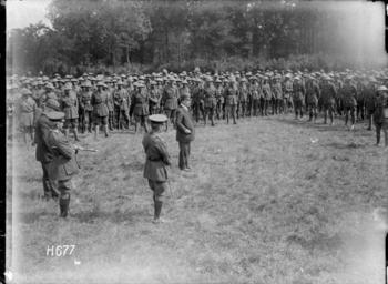 | Keywords: blackandwhite monochrome outdoor black and white Deputy Prime Minister Sir Joseph Ward addressing troops of the New Zealand [Maori] Pioneer Battalion during an official visit in World War I. Prime Minister William Massey, obscured, stands on the left. Photograph taken Bois-de-Warnimont, France, 30 June 1918 by Henry Armytage Sanders. Inscriptions: Inscribed - Photographer's title on negative -bottom left: H677. Quantity: 1 b&w original negative(s). Physical Description: Dry plate glass negative 4.75 x 6.5 inches Sir Joseph Ward addresses the New Zealand Pioneer Battalion, World War I. Royal New Zealand Returned and Services' Association :New Zealand official negatives, World War 1914-1918. Ref: 1/2-013281-G. Alexander Turnbull Library, Wellington, New Zealand. natlib.govt.nz/records/23121759 Deputy Prime Minister Sir Joseph Ward addressing troops of the New Zealand [Maori] Pioneer Battalion during an official visit in World War I. Prime Minister William Massey, obscured, stands on the left. Photograph taken Bois-de-Warnimont, France, 30 June 1918 by Henry Armytage Sanders. Inscriptions: Inscribed - Photographer's title on negative -bottom left: H677. Quantity: 1 b&w original negative(s). Physical Description: Dry plate glass negative 4.75 x 6.5 inches Sir Joseph Ward addresses the New Zealand Pioneer Battalion, World War I. Royal New Zealand Returned and Services' Association :New Zealand official negatives, World War 1914-1918. Ref: 1/2-013281-G. Alexander Turnbull Library, Wellington, New Zealand. natlib.govt.nz/records/23121759 |