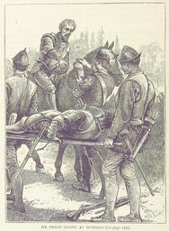 | Keywords: Sir Philip Sidney at Zutphen.jpg Philip Sidney on stretcher at the Battle of Zutphen 1873 From p 164 of the 1873 book British Battles on Land and Sea volume 1 Uploaded by the British library to Flickr https //www flickr com/photos/britishlibrary/11100213624/ here and cropped British Library image James Grant other versions PD-old-70-1923 Uploaded with UploadWizard Battle of Zutphen 1586 Philip Sidney | ||||