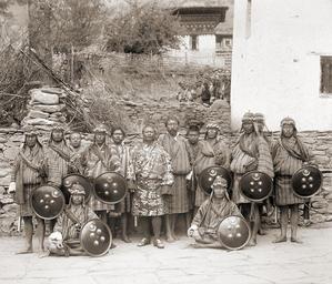 | Keywords: Sir Ugyen Wangchuk, with his bodyguards, Tongsa Dzong in Bhutan, 1905.jpg Sir Ugyen Wangchuk with his bodyguards ” at Tongsa Dzong in Bhutan 1905 He became the first King of Bhutan in 1907 http //www bl uk/onlinegallery/onlineex/apac/photocoll/t/019pho000000020u00034000 html British Library John Claude White 1905 PD-old-70-1923 Ugyen Wangchuk 1905 Trongsa Dzong Men of Bhutan Military history of Bhutan 1905 in Bhutan John Claude White Historical photographs of Bhutan Black and white photographs of Bhutan ¢ |