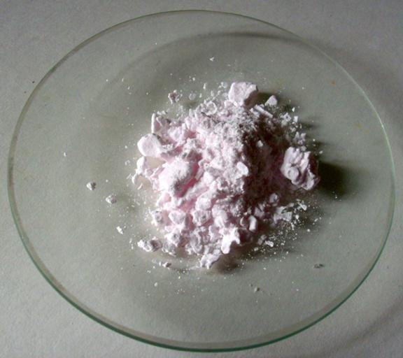 Keywords: Síran manganatý.JPG Manganese II sulfate MnSO<sub>4</sub> Own 2007-10-11 Ondřej Mangl Manganese II sulfate Samples of chemical compounds