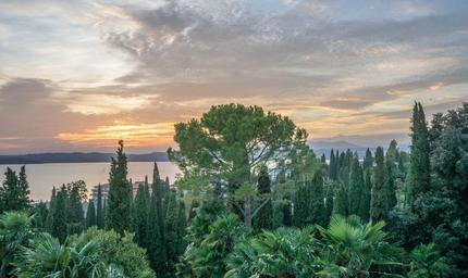 Keywords: sirmione sunset lake garda italy nature landscape water summer view lombardy scenic green travel forest trees lake