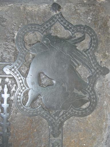 | Keywords: SirPeterCourtenayBrassExeterHawk&Duck.jpg en Heraldic device showing a hawk mantling over its prey of a duck From the monumental brass of Sir Peter Courtenay d 1405 5th son of Hugh Courtenay 2nd Earl of Devon d 1377 Exeter Cathedral south aisle own photo own photo own photo May 2012 Interior of Exeter Cathedral Monumental brasses in England |
