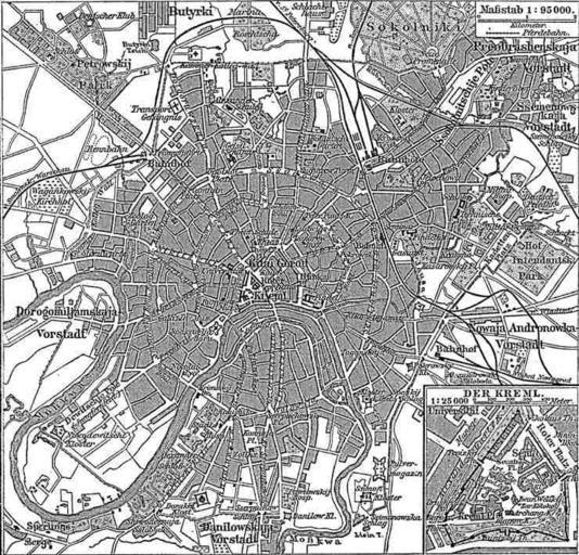 Keywords: Situationsplan von Moskau.jpg Quelle Meyers Konversationslexikon von 1888 Band 11 Seite 829 PD-Meyers Old maps of Moscow 1888 in Moscow