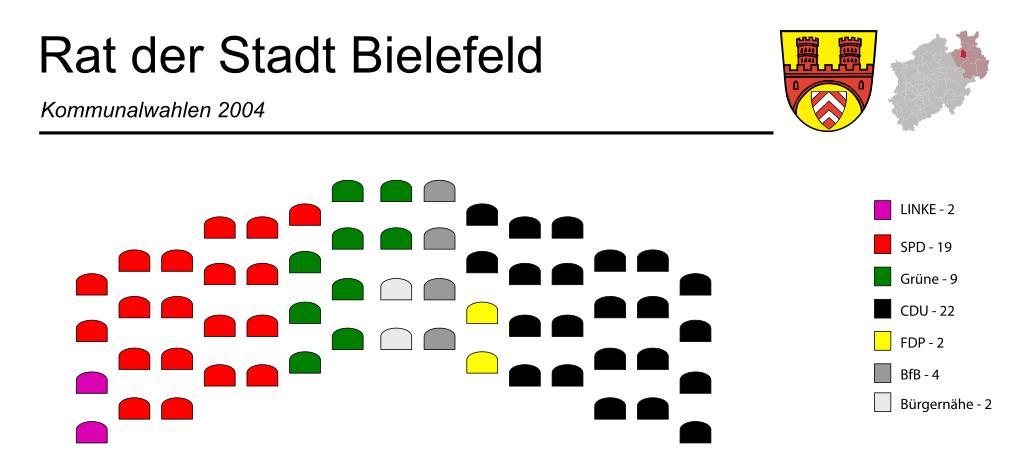 | Keywords: Sitzverteilung Rat Bielefeld 2004.svg Sitzverteilung im Rat der Stadt Bielefeld Wahlperiode 2004 own based partly on Wappen Bielefeld svg uploaded by Ludger1961 North rhine w HF svg by TUBS design based on de Benutzer DLiebisch/sitzverteilungen and Sitzverteilungsfigur svg by DLiebisch 2009 TUBS TUBS GFDL cc-by-3 0 2 5 2 0 1 0 cc-by-sa-3 0 2 5 2 0 1 0 TUBS/Credits Election apportionment diagrams of North Rhine-Westphalia Bielefeld Rat 2004 Statistics of Bielefeld Rat 2004 2004 in Bielefeld Rat 2004 Local elections in North Rhine-Westphalia 2004 Bielefeld Rat |