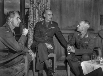 Keywords: andre verdenskrig andreverdenskrig vårslipp 2015 vårslipp2015 2. verdenskrig 2verdenskrig frigjøring 00 ukjent 00ukjent ukjent land ukjentland blackandwhite monochrome indoor black and white Original bildetekst: I tillegg til de rent militære grener er det opprettet en sivil administrasjon - Civil Affairs - som vil ta seg av de finansielle, juridiske, helsemessige og administrative problemer under frigjøringen av Norge. Organisasjonen ligger under Scottish Command's ledelse og innbefatter foruten norsk også engelske og amerikanske eksperter på alle områder. Bildet er tatt under en civil affairs mottakelse i 45 Park Lane 7 juli 1944 og viser fra venstre: General Oscar Strugestad, Lt. Gen. A.E. Grassett, C.B., D.S.O, General Johann Beichmann - Hærens overkommando. Arkivreferanse: NTBs krigsarkiv i Riksarkivet (RA/PA-1209/U/Uj/L0214) Original bildetekst: I tillegg til de rent militære grener er det opprettet en sivil administrasjon - Civil Affairs - som vil ta seg av de finansielle, juridiske, helsemessige og administrative problemer under frigjøringen av Norge. Organisasjonen ligger under Scottish Command's ledelse og innbefatter foruten norsk også engelske og amerikanske eksperter på alle områder. Bildet er tatt under en civil affairs mottakelse i 45 Park Lane 7 juli 1944 og viser fra venstre: General Oscar Strugestad, Lt. Gen. A.E. Grassett, C.B., D.S.O, General Johann Beichmann - Hærens overkommando. Arkivreferanse: NTBs krigsarkiv i Riksarkivet (RA/PA-1209/U/Uj/L0214)