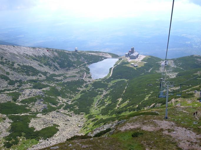 Keywords: Skalnaté pleso.jpg en Picture about Skalnaté pleso the final stop of furnicular and the Observatory from Lomnicky sedlo hu Kép a Kőpataki-tóról a felvonó végállomásáról valamint a Csillagvizsgálóról a Lomnici gerincről Own made Kocsis Viktor 2008-07-29 Skalnaté pleso |