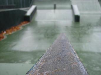 Keywords: skate board skateboard park skating facility autumn railing wet close-up water drops