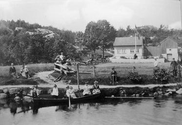 Keywords: Skibbuvollen.jpg no Bildet er fra Skibbuvollen på Østre Vallesverd i Lillesand Kopi foto av gammelt bilde Espen Selseng Begynnelsen av 1900-tallet Selseng 58 12 54 92 N 8 16 50 94 E alt 0_source exif_heading PD-old People of Aust-Agder Farms in Aust-Agder Boats in Aust-Agder Historical images of Lillesand Vallesværelva Rivers of Aust-Agder