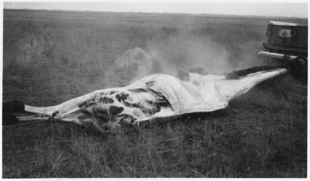 | Keywords: Skinning a buffalo the easy way - NARA - 285570.tif Scope and content Accomplished by pulling the carcass between two cars but judged undesirable because it picks up a lot of dirt Pictures show pickup truck and carcass and men observing General notes 285570 Local identifier Department of the Interior Office of Indian Affairs Pine Ridge Agency 1878 - 09/17/1947 NARA's Central Plains Region Kansas City NREA 400 West Pershing Road Kansas City MO 64108 other date ~ 1945 Record group Record Group 75 Records of the Bureau of Indian Affairs 1793 - 1999 Record group ARC 404 Pine Ridge Agency Miscellaneous Photographs compiled 1923 - 1955 Series ARC 285545 File unit File unit ARC Variant control numbers NAIL Control Number NRE-75-PRSERIES215-2924 yes Other versions <gallery> File Skinning_a_buffalo_the_easy_way_-_NARA_-_285570 tif tif File Skinning_a_buffalo_the_easy_way_-_NARA_-_285570 jpg jpg </gallery> NARA-cooperation PD-USGov NARA TIF images with categorized JPGs |