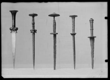 | Keywords: Skivdolk - Livrustkammaren - 77366.tif Sammansatt av ursprungligen ej samhörande delar Klingan sannolikt från sen medeltid Kavel av sengotisk typ Knapp och parerplåt sentida 1830-50 Monteringen av de olika delarna till av allt att döma utförd under sistnämnda tid Fäste av mässing Knapp pålödd kaveln och av rund vertikalt hoptryckt form utmed mitten bård hålkäl Nitknappen som är platt och med ojämnt flersidig kontur utgör huvudet till en i knappen inskruvad kort skruv Kavel koniskt avsmalnande mot klingbasen Rund överdelens mitt och nederdel en snedräfflad ring Mellan dessa ett yttäckande mönster av stående rektangulära fält med rut- och kryssmönster i låg relief och med spår av påhamrat silver Parerplåt slät rundat skivformig och vågrät utskjutande på vapnets utsida utmed kanten bård av runda hål Parerplåtens insida liten bredd 18mm rakt nedåtböjd och formad som en palmett Klinga tvåeggad illa medfaren och täckt av gravrost Eggsidorna ojämna mycket skadade Jordfynd original caption skivdolk - LRK 17153 ca other date - 1400 1850 brass b1 - blankvapen - fäste material mässing - silver b4 - blankvapen - fästdekor material silver size mm 272 size mm 45 size mm 168 klinga size mm 25 klinga g 190 LRK Alexander E C G von Post Kapten 1843-1899 Stora Djulö Sverige place of origin original filename LN_B00339_003219 52444 inventory number LRK 17154 77366 CC0 Skivdolk - Livrustkammaren - 77366-negative tif <gallery caption Different images of same object > File Dolk sammansatt - Livrustkammaren - 17594 tif </gallery> Knife images from Livrustkammaren Media contributed by LSH dim-with multiple size templates Dagger images from Livrustkammaren Media contributed by LSH 2013-10 |