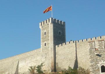 Skopje Fortress, tower with Macedonian flag.jpg (2105x1493)