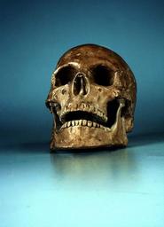 Keywords: skull gold still life blue background
