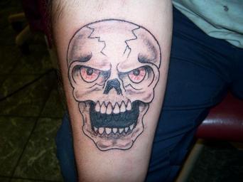 Keywords: Skull tattoo cover-up by Keith Killingsworth.JPG skull tattoo cover-up by Keith Killingsworth Own 2007 Ta2man Tattoos of skulls Tattoos by Keith Killingsworth Arm tattoos Cover-up tattoo