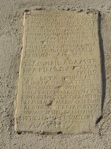 | Keywords: Skupice nápis na zvonici.JPG cs Nápis na zvonici ve Skupicích z roku 1633 en Epigraph on the bell tower in Skupice Czech Republic own Gortyna Bell towers in Louny District Czech inscriptions in Ústí nad Labem Region Czech inscriptions before 1842 ortography reform Church of Saint John the Baptist Skupice |