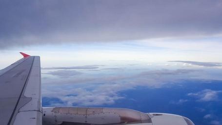 Keywords: sky airplane clouds skyline travel fly plane transportation transport jet aircraft air wing turbine horizon high commercial altitude aviation airliner passenger
