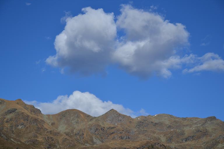 Keywords: sky blue clouds mountains landscape nature mood joy sun autumn weather