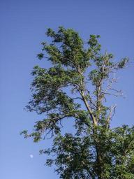 Keywords: sky blue nature tree sky beams flora agriculture yellow green road aesthetic leaf leaves branch color shades of green green green canopy moon crescent