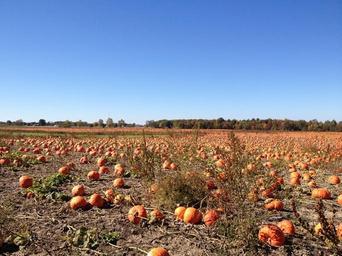 Keywords: sky blue sky orange pumpkins field pumpkin field rural farm