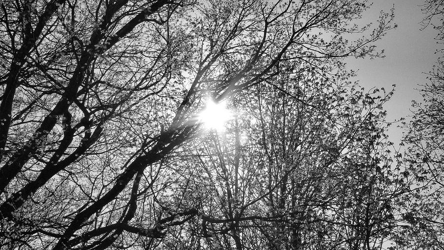 Keywords: sky branches trees nature sun black and white spring season natural