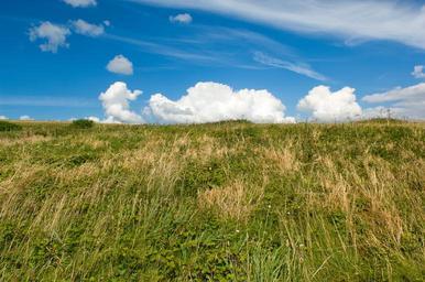 Keywords: sky clouds dramatic landscape grass hill green foreground countryside country grassland field long grass summer