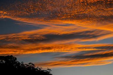 Keywords: sky clouds sunset orange golden horizon trees australia