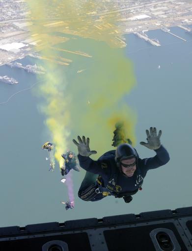 Keywords: sky diver parachute jump smoke free fall parachuting military skydiving