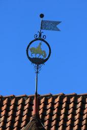 Keywords: sky gable roof weathervane horse animal reiter tile blue