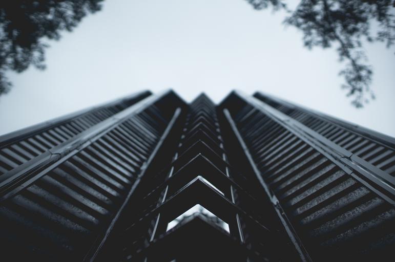 Keywords: sky scraper highrise building black and white urban architecture