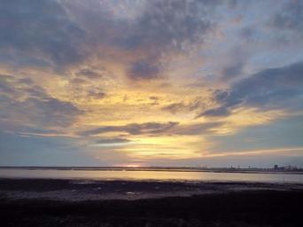 Keywords: sky sunset blue nature landscape sunlight light orange horizon bright clouds scene outdoor sun sunrise season natural weather cloudscape travel view yellow evening water