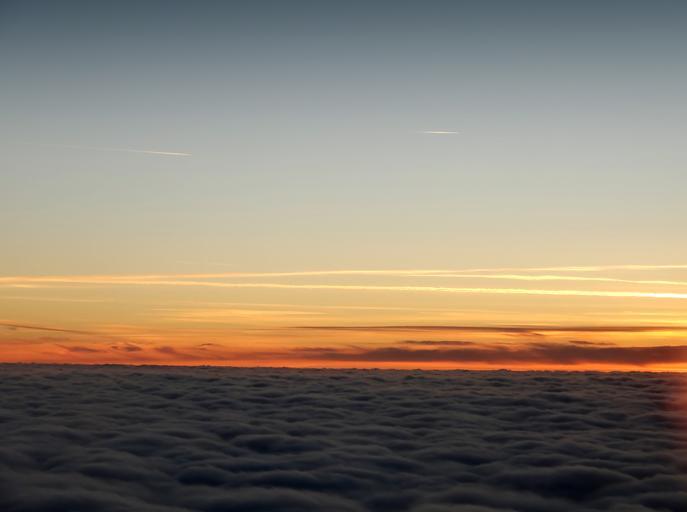 Keywords: sky sunset cloud view sunny aircraft contrail yellow orange