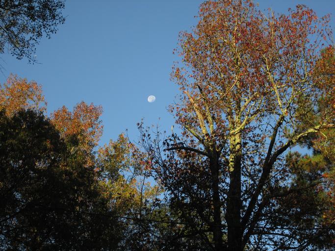 Keywords: sky trees nature landscape natural season outdoor environment nature backgrounds blue blue sky scenery blue sky background moon fall autumn