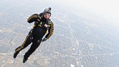Keywords: skydiving jump falling parachuting military training high people parachute flight sky airplane army golden knights team stunts free fall salute