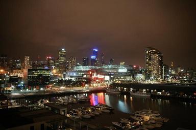 Keywords: melbourne australia skyline skyscrapers buildings urban architecture night evening lights lighting reflections harbor port water bridge bay