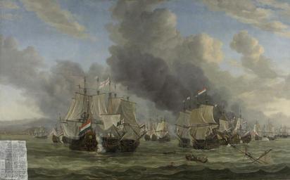 | Keywords: Slag bij Livorno Rijksmuseum SK-A-294.jpeg accession number SK-A-294 Creator Reinier Nooms credit line nl De zeeslag bij Livorno op 14 maart 1653 tussen de Nederlandse vloot onder bevel van Jan van Galen en de Engelse vloot onder Sir Appleton Op de voorgrond de mast van een gezonken schip en zeelieden in een sloep en in het water Boven de schepen donkere rookwolken Links in de verte de kust bij Livorno ; Reinier Nooms genaamd Zeeman 1623/24 “1664 olieverf op doek 1653 “1664 drager Height cm 142 drager Width cm 225 exhibition history 2012-2012 Amsterdam Istanbul-II Amsterdam 2012-2012 Amsterdam Istanbul-II Amsterdam 2012-2012 Amsterdam Istanbul - I Istanbul 2009-2010 Vermeer Rembrandt and the golden Age of Dutch Art Masterpieces from the Rijksmuseum Amsterdam - 3 Paris 2009-2009 Vermeer Rembrandt and the golden Age of Dutch Art Masterpieces from the Rijksmuseum Amsterdam Vancouver Canada Institution Rijksmuseum Technique oil canvas object history Acquisition 1800 object type Potential derivatives exist check http //commons wikimedia org/w/index php search Rijksmuseum+SK-A-294 this search PD-US PD-old Data and photography rights All data and all images made available through the API are either in the public domain or are subject to a CC0 license https //www rijksmuseum nl/en/api/terms-and-conditions-of-use cc-zero place of creation P Sigmond 'Collectie Zeeslagen en zeehelden in de Gouden Eeuw Maritieme geschiedenis in het De Ruyterjaar' Rijksmuseum Kunstkrant 33 2007 2 p 5-8 afb Documentatiemap Schilderijen aantekeningen R van Luttervelt voor 1963 http //www rijksmuseum nl/collectie/SK-A-294 Slag bij Livorno Q17320043 Uploaded with GWToolset Slag bij Livorno Rijksmuseum SK-A-294 http //www rijksmuseum nl/media/assets/SK-A-294 Images uploaded by Fæ Images from the Rijksmuseum Paintings by Reinier Nooms in the Rijksmuseum Amsterdam Reinier Nooms |